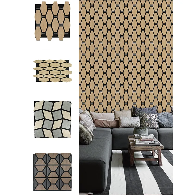 Material: High-density polyester fiber sound-absorbing substrate + E0-grade medium-density fiberboard strips.