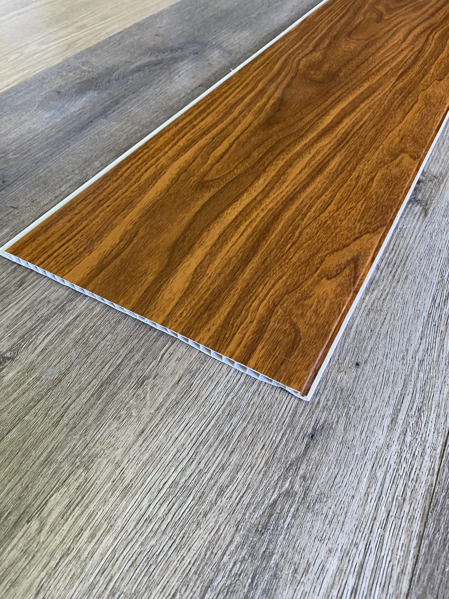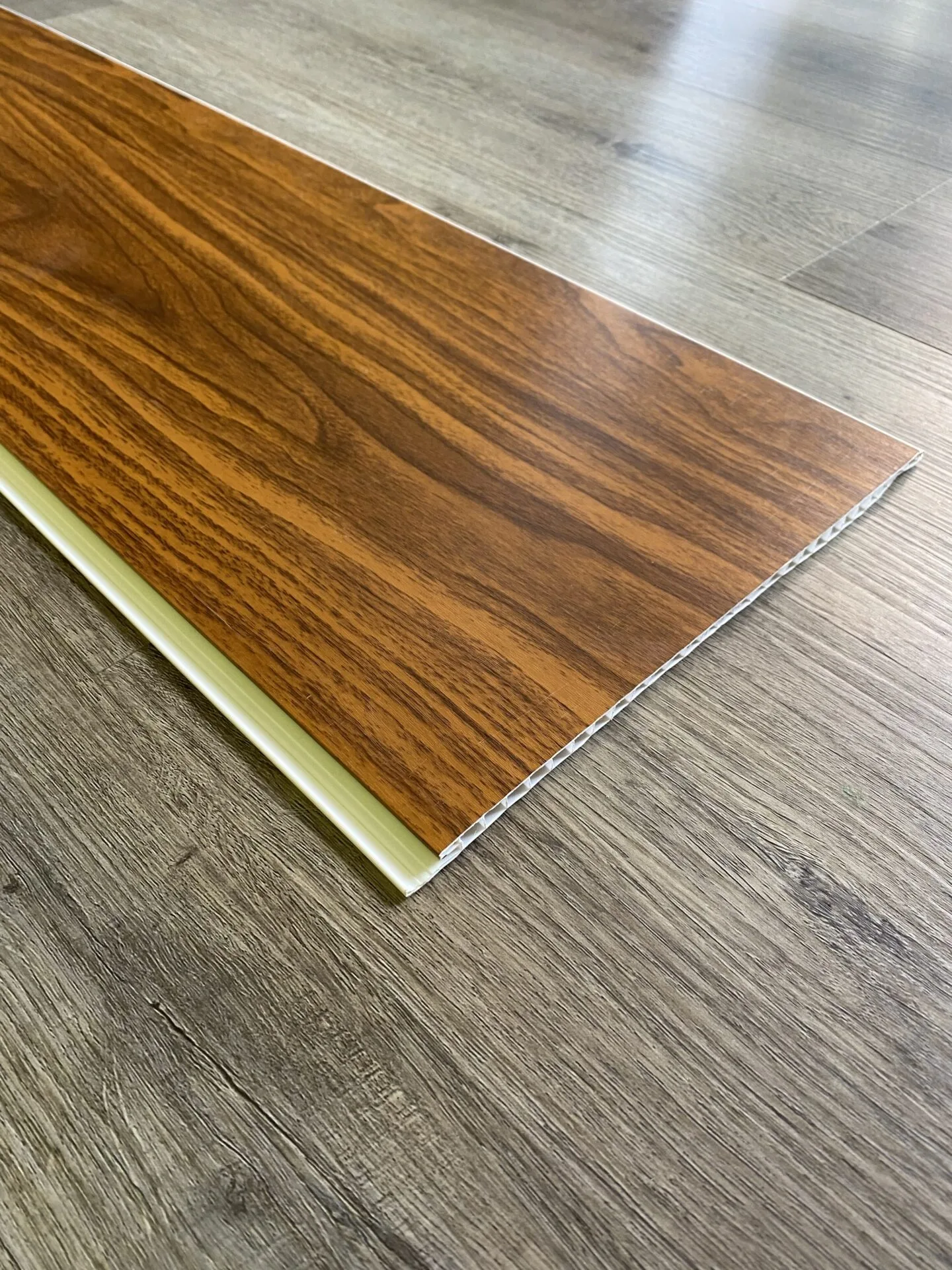 本品采用高纯度环保PVC原料,添加抗老化、抗冲击、耐候性改性助剂,经高温挤压一体成型,整体无拼接缝隙、表面光滑细腻,无异味、无有害挥发物,质地均匀致密,适配厨房、卫生间、阳台、走廊等各类家装、工装吊顶/墙面装饰场景。